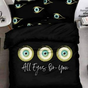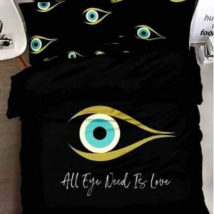 סט מצעים סאטן אל-קמט דגם אמונה (עין גדולה שחור)