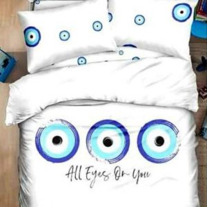 סט מצעים סאטן אל-קמט דגם אמונה (עין גדולה לבן)