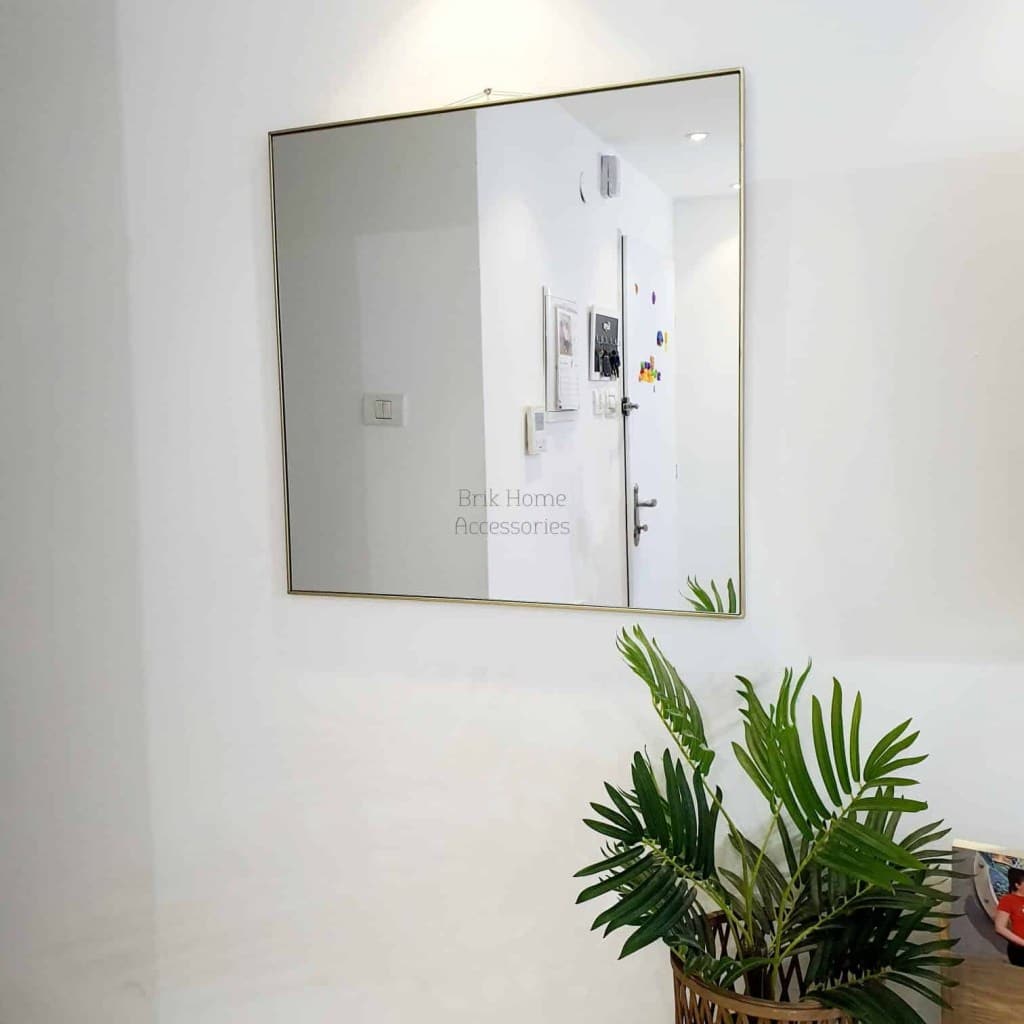 מראה מרובעת 60/60 עם מסגרת מתכת דקה בצבע זהב