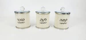 סט תה קפה סוכר דמוי קריסטל לבן בכיתוב עברית