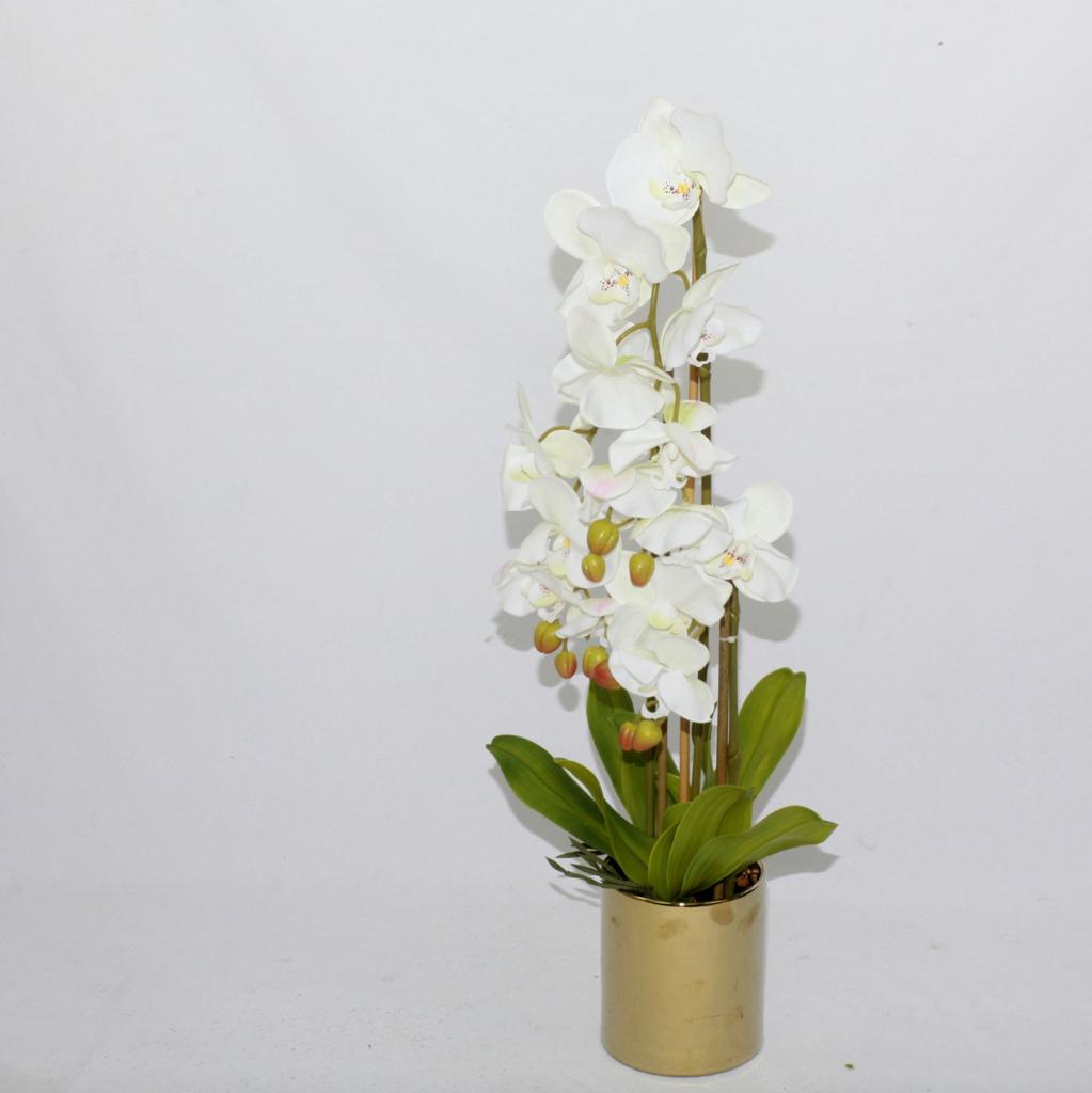 448005- סחלב בינוני לבן בכלי זהב 70 ס"מ